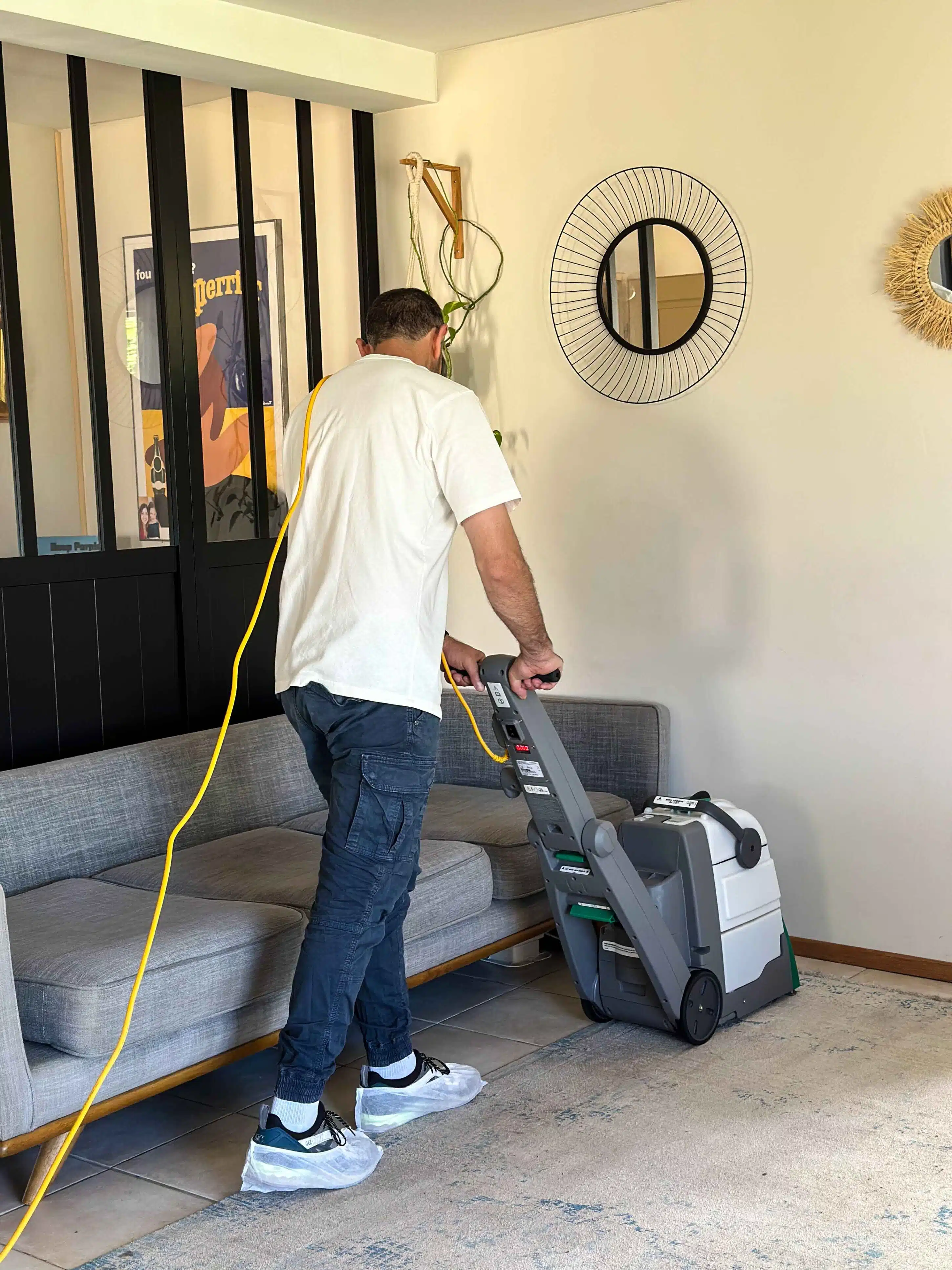 (injection-extraction, monobrosse) pour nettoyer en profondeur tout en respectant la structure des fibres.